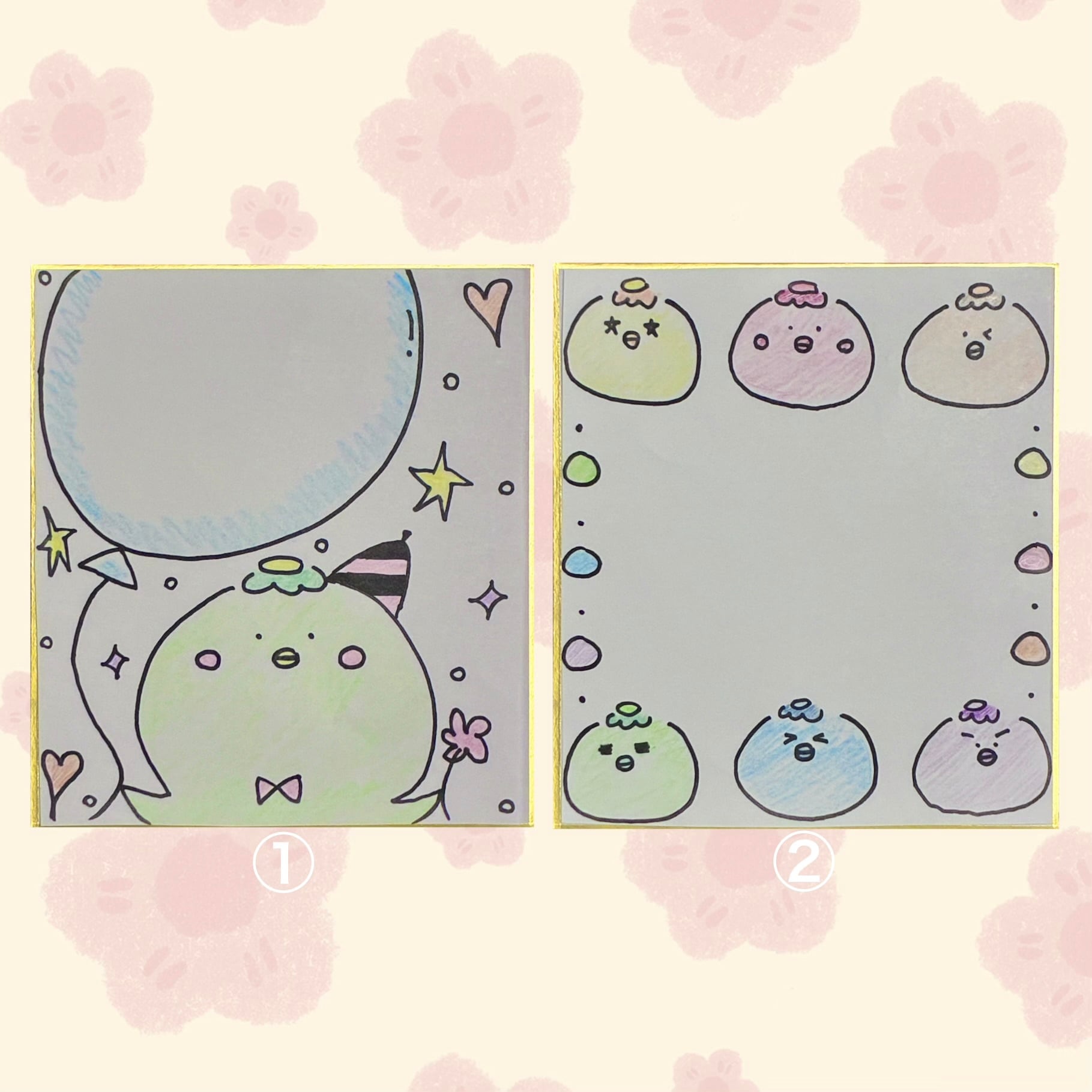 カッパイラストを描いたミニ色紙。